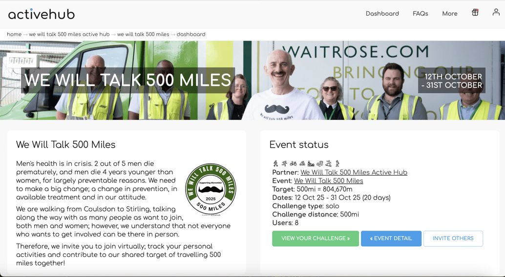 To get involved, simply register for the We Will Talk 500 Miles Active Hub on the button below and sign up for the event. Don't forget to download the myActiveHub app to record your activities and track your challenge progress, available on the Apple App Store and Google Play.
